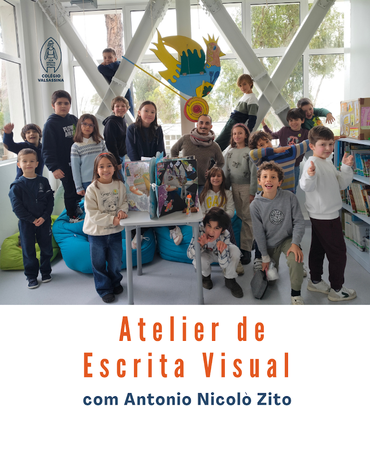 No Atelier de Escrita Visual do 1.º Ciclo, os/as alunos/as foram desafiados/as a dar forma ao tema “Livro” para a 54.ª Exposição Internacional de Arte Infantil de Lidice 2026. A iniciativa foi dinamizada pelo artista visual e contador de histórias italiano Antonio Nicolò Zito, que orientou as crianças numa experiência criativa e sensorial.