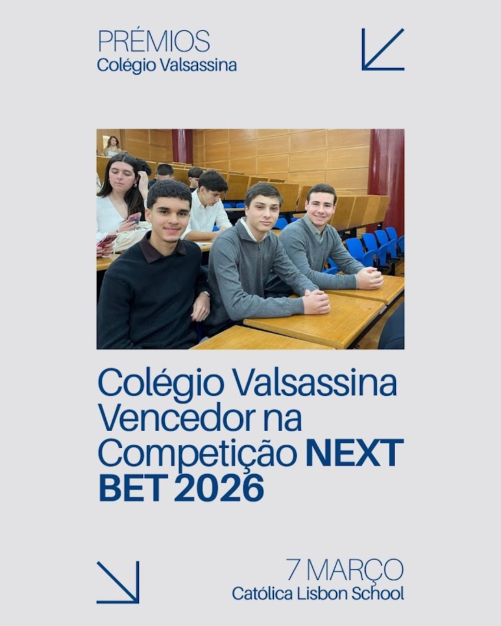 No dia 7 de março, cinco grupos do 12.º ano de Economia do Colégio Valsassina foram selecionados para participar na competição de pitching NEXT BET 2026, promovida pelo Clube BET – Bring Entrepreneurs Together, da Católica Lisbon School of Business and Economics.