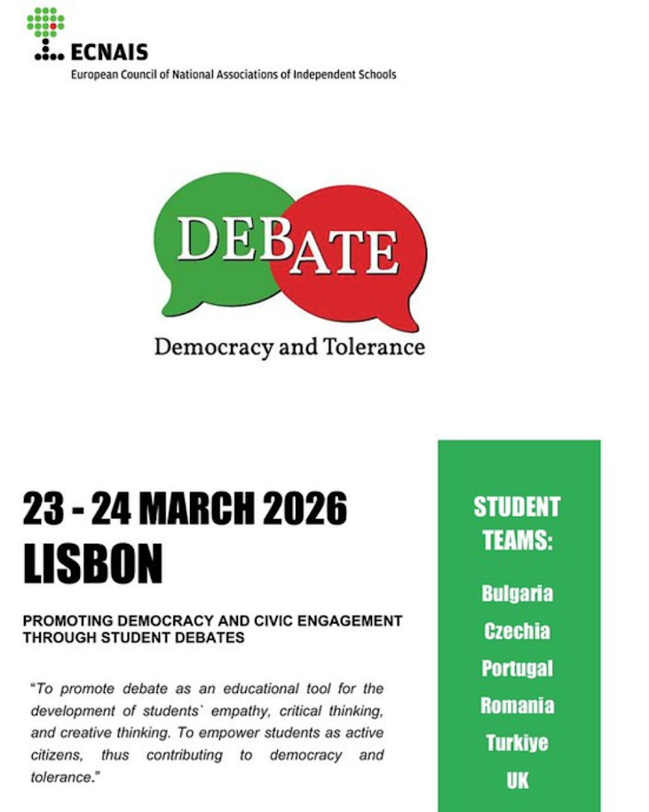 Lisboa acolheu, nos dias 23 e 24 de março, o ECNAIS Student Debate Event, uma competição europeia dedicada à promoção da democracia e da cidadania ativa. Organizado pela ECNAIS em parceria com a AEEP, o evento reuniu, no Colégio Valsassina, 10 escolas de seis países: Portugal, Reino Unido, Chéquia, Bulgária, Roménia e Turquia.