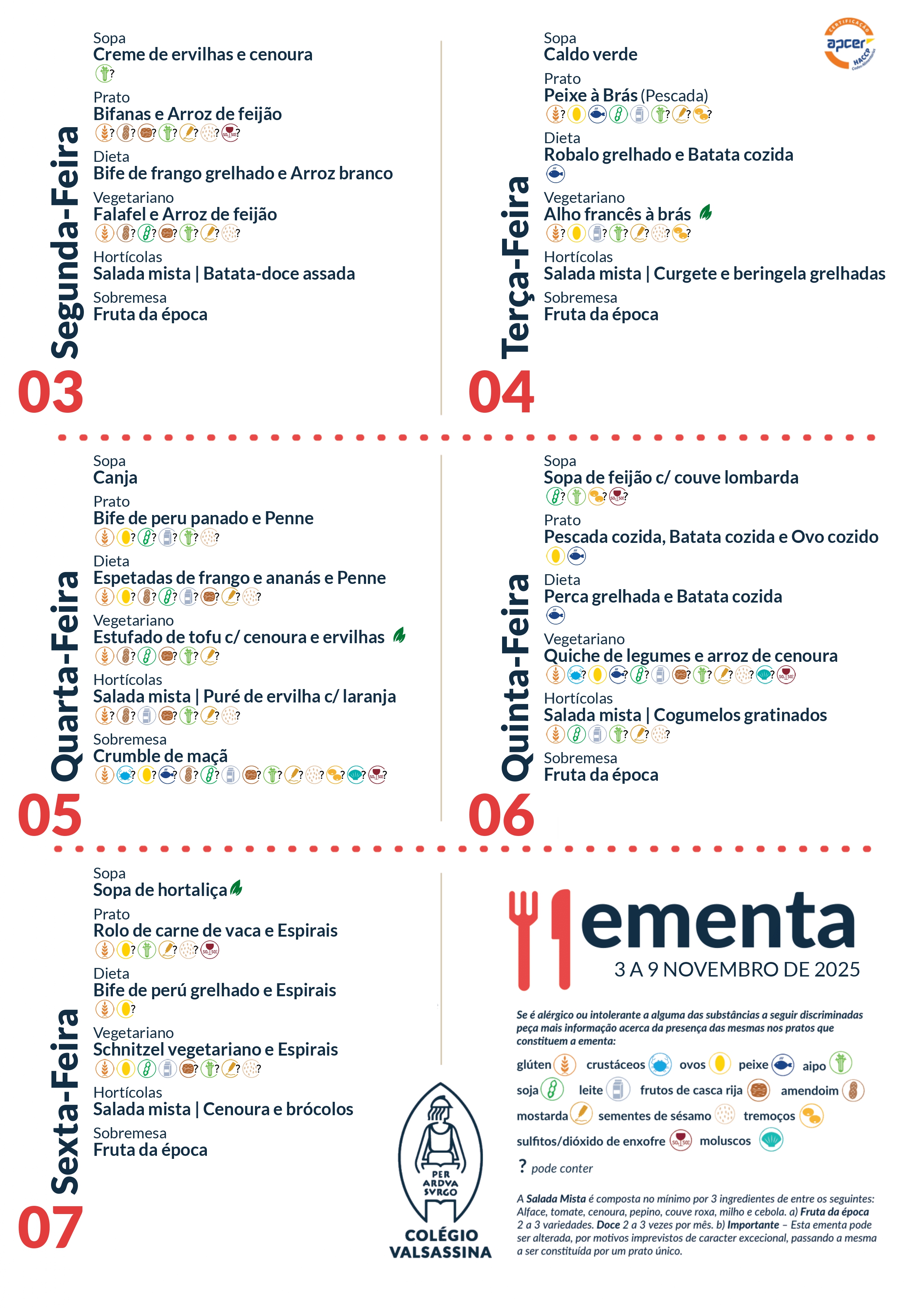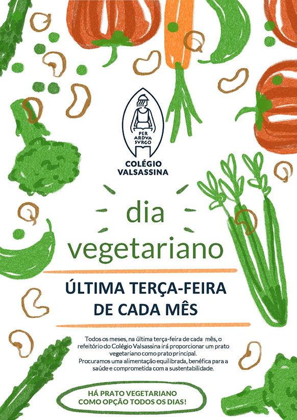 Todos os meses, na última terça-feira de cada mês, o refeitório do Colégio Valsassina irá proporcionar um prato vegetariano como prato principal.