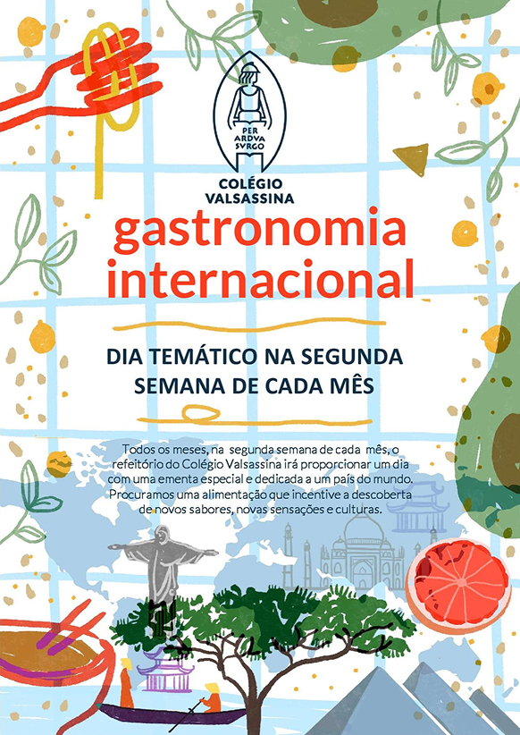 Todos os meses, na segunda semana de cada mês, o refeitório do Colégio Valsassina irá proporcionar um dia com uma ementa especial e dedicada a um país do mundo.