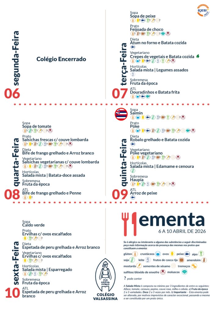 Todos os meses, na segunda semana de cada mês, o refeitório do Colégio Valsassina irá proporcionar um dia com uma ementa especial e dedicada a um país do mundo.
